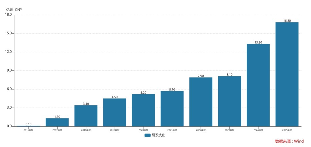 市场里,永远是靠实力说话。2018年,中际旭创率先量产400G光模块抢占先机,随后不断加码。Wind显示,2021年-2025年,中际旭创研发费用分别为5.7亿元、7.9亿元、8.1亿元、13.3亿元、16.8亿元,累计达51.8亿元,2026年一季度,更以6.45亿元同比大增122.05%。