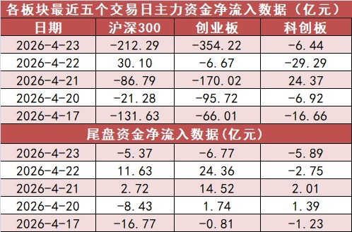沪深300今日主力资金净流出212.29亿元,创业板净流出354.22亿元,科创板净流出6.44亿元。